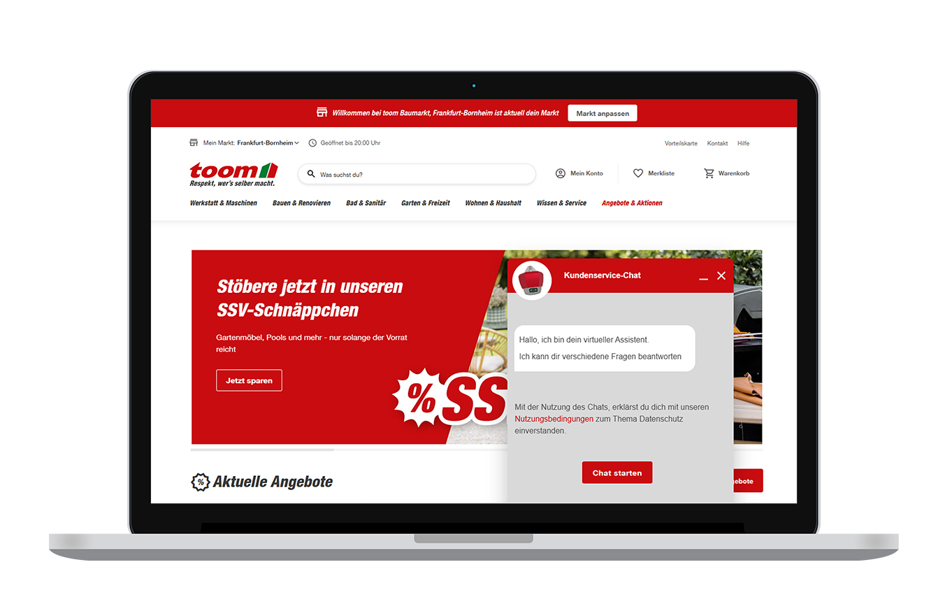 Modeling, Rigging und Animation eines Chatbots für die Kunden-Chat-Funktion der Toom-Baumarkt Website.​